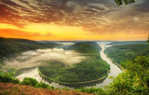 Steht Ihnen der Sinn nach einer spannenden Wanderung in faszinierender Umgebung mit luftigen Höhen, friedlichen Wäldern und wilden Gewässern? Dann ist der Saar-Hunsrück-Steig im gleichnamigen Naturpark eine ausgezeichnete Wahl. Auf rund 410 km führt Sie dieser erstklassige Wanderweg von der Mosel im Saarland bis nach Boppard am Rhein in Rheinland-Pfalz. Dabei ist auf 24 Etappen vom deftigen Aufstieg bis zum entspannten Uferspaziergang alles dabei, was sich der Naturliebhaber wünscht. Wem das noch nicht reicht, der kann auf drei optionalen Etappen zudem das historisch bedeutsame Trier besuchen. Lassen Sie sich verzaubern von der Vielfalt und Schönheit dieser einzigartigen Region.